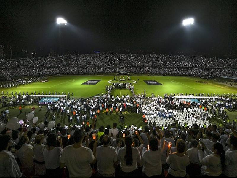 Na noite desta quarta-feira, 30 de novembro, no horário marcado para o jogo de ida entre Chapecoense e Atlético Nacional pela final da Copa Sul-Americana, o time colombiano ofereceu ao brasileiro uma homenagem à altura das 71 vítimas fatais, dos 6 sobreviventes e de todos aqueles que, familiares, amigos ou “apenas” seres humanos solidários, também foram vítimas da tragédia.